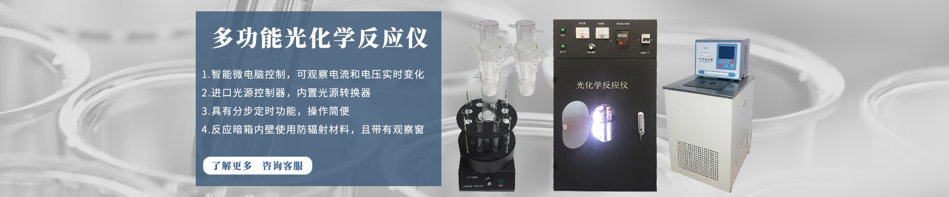 ????多試管光化學反應儀,多功能光化學反應儀,大容量光化學反應儀等六種型號。